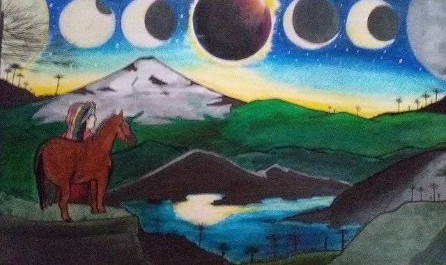 Con el fin de fomentar las artes en torno a los saberes del territorio, se hizo un llamado abierto a los habitantes de La Araucanía que elaborarán obras que abordarán el eclipse en sus localidades
