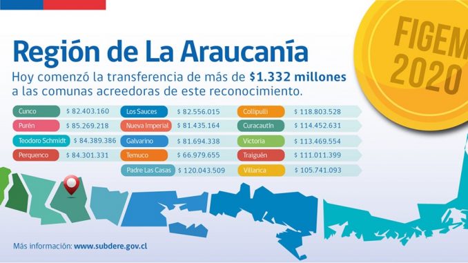 En el caso de la Región de La Araucanía, son 14 los municipios acreedores del reconocimiento, entre los que se distribuirá un monto total de $1.332 millones.