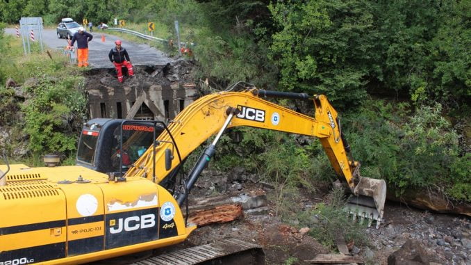 Fueron en total cerca de 570 cubos de material pétreo los usados para rellenar la estructura, además de dos expertos en el uso de maquinaria pesada como una retroexcavadora y excavadora, 10 camiones tolva y 3 planos. Todo dispuesto en un operativo conjunto de alta complejidad, como explicaron los especialistas de Vialidad, Víctor Acuña, jefe de conservación de Validad Cautín y Eber Aranda, encargado de la Unidad de Puentes.