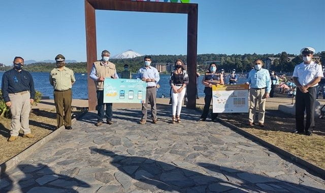 En la playa Pucará de la comuna lacustre se entregaron recomendaciones para el uso de playas, que establece tres medidas obligatorias: el uso de mascarilla, salvo cuando se esté en el agua o a más de dos metros de distancia de otra persona, distancia física de a lo menos un metro y lavado permanente de manos.