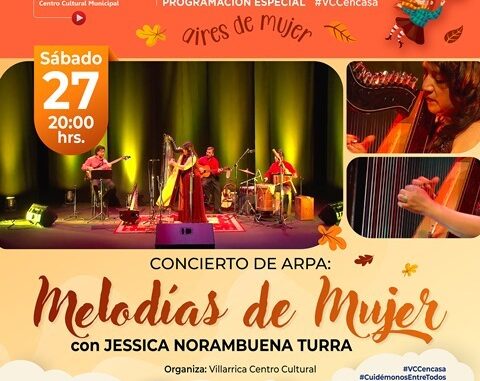 Culminando el mes de la mujer, el Centro Cultural de Villarrica, presentará a través las plataformas digitales Facebook Live y canal de YouTube: Villarrica Centro Cultural, este sábado 27 de marzo, a las 20:00 horas, un extraordinario Concierto en Arpa, denominado “Melodías de Mujer” con la destacada artista villarricense, Jessica Norambuena Turra.