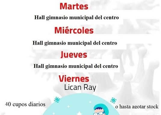 El horario de los operativos se inicia a las 09:00 horas y se prolonga hasta agotar el stock diario, la atención es por orden de llegada y está dirigido a personas asintomáticas; estos mismos exámenes se realizan el viernes en el consultorio de Lican Ray, con la misma modalidad.