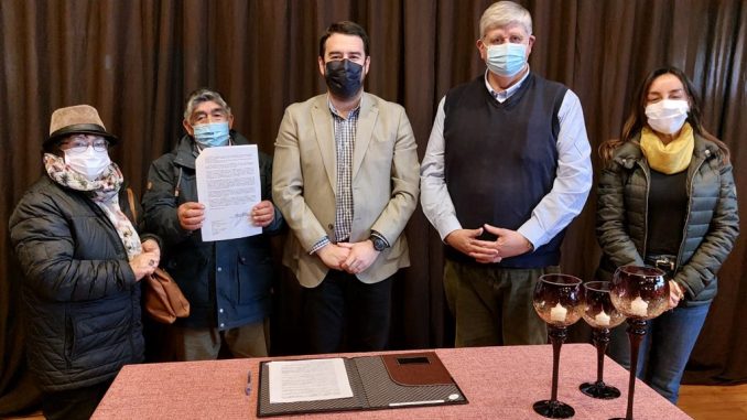 La máxima autoridad regional junto al alcalde de Villarrica y vecinos del sector rural de Malloco Lolenco, participaron de la ceremonia que selló el compromiso del Gobierno Regional con las 169 familias del sector.