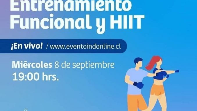 El día miércoles 08 de septiembre a partir de las 19:00 horas será transmitida la actividad de Entrenamiento Funcional y Hiit, que será dirigida por profesores del IND regional, la invitación es a conectarse directamente en www.eventoindonline.cl para disfrutar de una motivada y entretenida clase preparada para toda la familia.