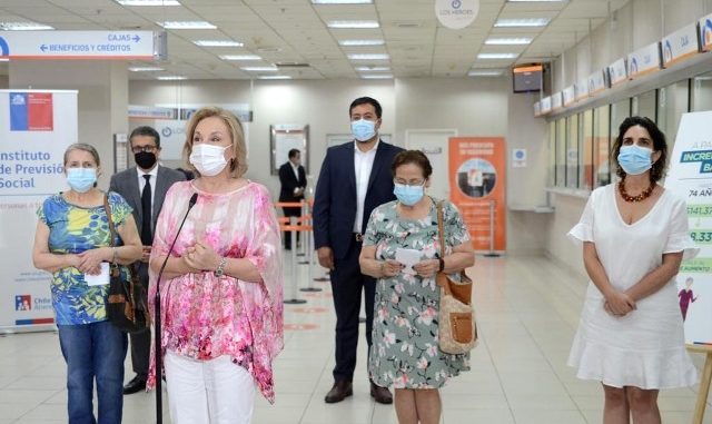 Acompañadas por el subsecretario de Previsión Social (s) Francisco Oxa, y el director del Instituto de Previsión Social (IPS), Patricio Coronado, la primera dama y la ministra del Trabajo llegaron hasta una sucursal de la Caja de Compensación Los Héroes en el centro de Santiago para dar a conocer la medida, que en los primeros 4 días de pagos ya ha sido recibida por más de 165 mil personas, equivalente al 12% del total de aquellos que reciben Pensión Básica Solidaria (PBS) y Pensión Máxima con Aporte Solidario (PMAS).