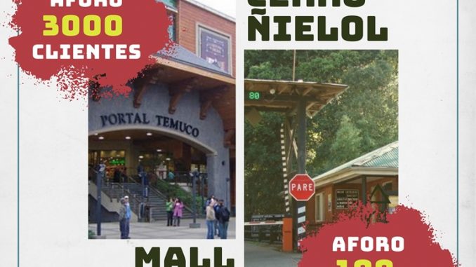 Saltan a la vista tras decisiones como esta, las inconsistencias de la autoridad al permitir que espacios cerrados en ciudades como Temuco, cuenten con aforos de miles de personas, mientras parques nacionales o espacios naturales –que podrían estar a disposición de todos para ejercitarse y disfrutar de la naturaleza al aire libre– tengan un reducido acceso, como lo es el caso del Cerro Ñielol en Temuco, donde el aforo es de solo 100 personas. Misma situación se vive en parques nacionales como el Villarrica, o Conguillío, donde el aforo no supera las 200.