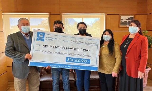 Son 121 los estudiantes de Pucón, quienes fueron beneficiados con el Aporte Municipal para la Enseñanza Superior, que entregó la Municipalidad con el apoyo del Concejo. Este año el monto a entregar ascendió a 24 millones 200 mil pesos, de los cuales cada beneficiado recibirá 200 mil pesos, los que fueron depositados en sus respectivas cuentas bancarias.