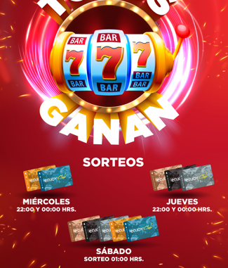 Hasta el 30 de abril el casino dispondrá de sorteos para los socios de Enjoy Club. Uno de ellos es “Todos ganan”, donde se repartirá más de $8.500.000 en premios. Quienes participen recibirán un cupón en cada visita al casino. Los ganadores se darán a conocer por categoría los pertenecientes a Silver o Gold, tendrán resultados del concurso los días miércoles. Para los jugadores platinum, diamond, seven star, serán los días jueves. Además habrá un sorteo especial los días sábados, donde todas las categorías podrán ganar.