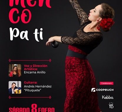 De manera híbrida –presencial con aforo reducido y transmisión en vivo por streaming– la Ilustre Municipalidad de Villarrica presenta este sábado 8 de enero a las 21:00 horas, desde la Sala de Teatro de Liquen Centro Cultural, la actividad “FLAMENCO PA TI”, idea original del chileno Andrés Hernández “Pituquete” y dirección artística de la española oriunda de Cádiz, Encarna Anillo.