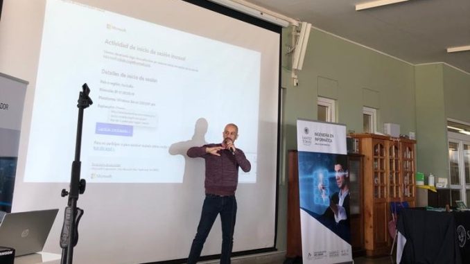 La charla denominada “Hacking ético”, estuvo dirigida por el docente de Ingeniería en Informática Roberto Cognian, quien capacitó a 120 estudiantes de 3° medio.