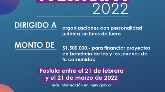 Quienes estén interesados pueden revisar las bases en https://www.injuv.gob.cl/personas/fondo-participa-2022.