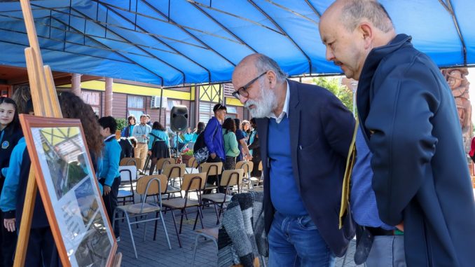 La exposición consistió en fotografías históricas de lo que fue la presencia del tren en Villarrica, en una labor “que se ha realizado a pulso, con mucha energía por parte de los profesores y estudiantes y lo valoramos bastante, porque se abre también a la comunidad”, aseguró el personero del establecimiento local.