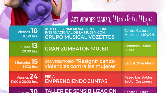 Como una forma de reconocer el aporte de las mujeres de la comuna, la Municipalidad de Villarrica ha organizado diversos eventos culturales, artísticos, deportivos y recreativos, partiendo por este viernes 10 de marzo, con la presentación del grupo musical Vozettos.