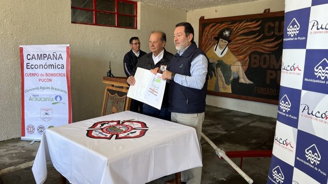 En dependencia del cuartel general de Bomberos, se realizó la firma oficial del convenio del Cuerpo de Bomberos de Pucón en conjunto con Aguas Araucanía, el que busca a través de este realizar una campaña económica con el objetivo de aumentar los ingresos para las distintas compañías de bomberos de la comuna lacustre. Se trata de un convenio que busca recolectar los aportes voluntarios que serán cobrados mensualmente a través de la boleta de los clientes de Aguas Araucanía.