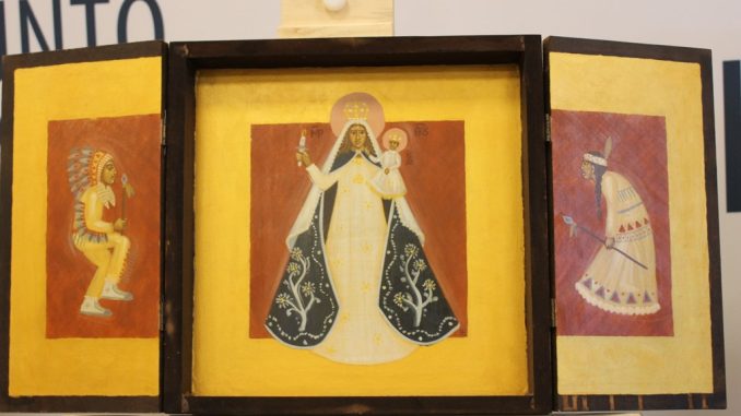 La exposición consta de 5 pinturas iconográficas realizadas por el arquitecto y profesor asociado de la Facultad de Teología de la Pontificia Universidad Católica de Chile, Federico Aguirre, obras que representan a las advocaciones marianas más representativas del norte de nuestro país.
