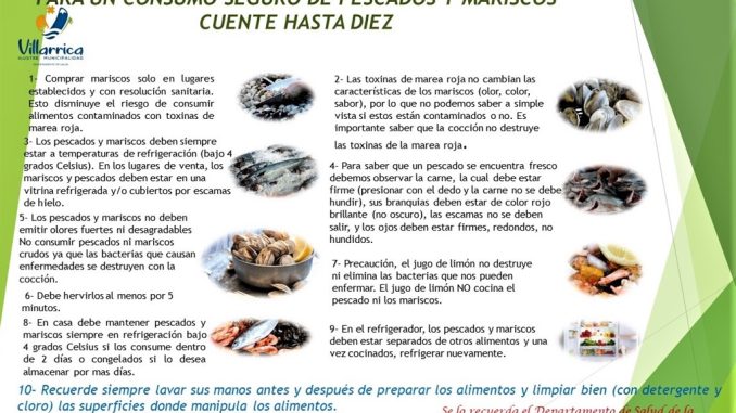 Ante la proximidad de semana santa el Departamento de Salud de la Municipalidad de Villarrica ha iniciado una campaña de prevención para el consumo de pescados y mariscos lo que aumenta en forma importante en estas fechas, para ello es que se ha lanzado un afiche con varias recomendaciones en donde se entregan tips sobre la manipulación, conservación y preparación de estos productos del mar.