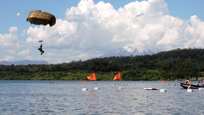 Este fin de semana se desarrolló en Villarrica un torneo internacional de paracaidismo de precisión, versión que tuvo la particular variación de ser “en el agua” y que se desarrolló en el lago, en donde se clausuró el certamen, con la repartición de los últimos puntajes, hasta la posterior formal premiación que se realizó en el Casino de Carabineros.