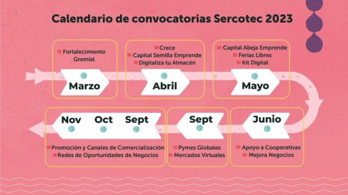 El Servicio de Cooperación Técnica, Sercotec, anunció el calendario de convocatorias 2023 para sus fondos concursables dirigidos a pymes y emprendimientos, buscando facilitar la preparación de quienes estén pensando en postular a las diversas líneas de apoyo que ofrece la entidad.