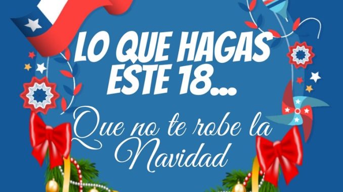 “Lo que hagas este 18… Que no te robe la Navidad”, se denomina la campaña como parte de las acciones preventivas previas a estas Fiestas Patrias en cabezadas por la Casa Edilicia lacustre, con el objetivo de sensibilizar e incentivar a festejar de manera responsable el próximo “18”, planteando -además- la opción de que no es necesario consumir alcohol para disfrutar estas celebraciones.