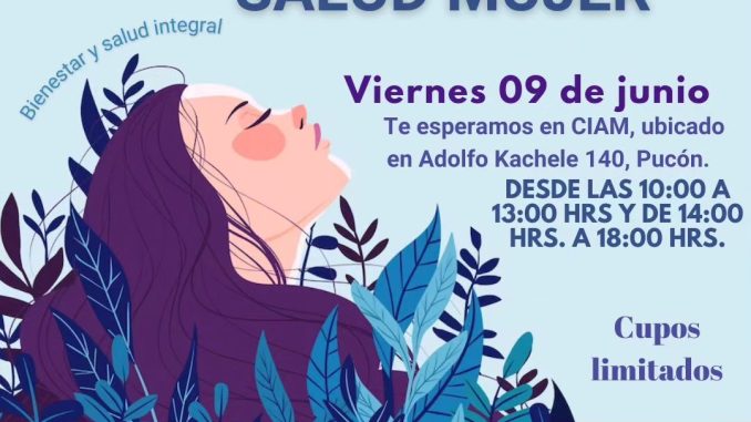Este viernes 9 de junio desde las 10:00 de la mañana hasta las 13:00 horas, y desde las 14:00 a las 18:00 horas, en dependencias del Centro Integral del Adulto Mayor, Ciam Pucón; se desarrollará una nueva versión de la Expo Salud Mujer, evento organizado por la Oficina de la Mujer de la Municipalidad de Pucón en el Día internacional por la Acción de la Salud de las Mujeres.