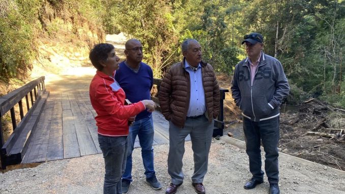 El alcalde de Pucón, Carlos Barra, en compañía de funcionarios municipales, revisó en terreno la situación actual en materia de caminos y puentes, tanto de administración municipal como de Vialidad, de los distintos sectores rurales de Pucón.