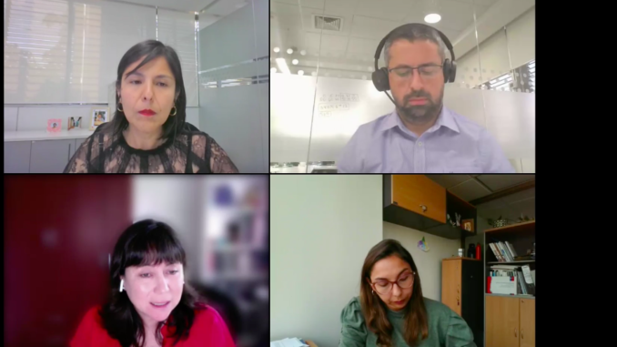 El panel de conversación moderado por la vicepresidenta de Pro Salud Chile, Claudia Ramos, lo integraron. Cecilia Rodríguez: directora de la Fundación Me Muevo, Constanza Piriz: jefa de Dpto. Discapacidad y Rehabilitación del MINSAL y el Dr. Alejandro Rodríguez, jefe Unidad de Dolor Crónico no oncológico del Hospital de La Florida.