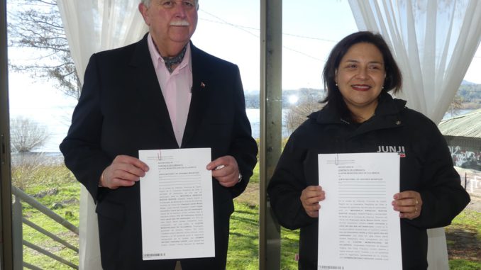 El alcalde de Villarrica, Germán Vergara, firmó hace unos días, los comodatos junto a la directora regional de Junji Araucanía, Andrea Fernández, con la finalidad de construir estos jardines infantiles que brindarán atención a 160 niños, niñas y sus familias.