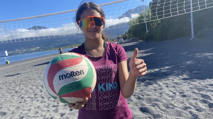 Elena Rabi, de 13 años, es estudiante del Raitrai College de Pucón y participa de los talleres de Voleibol Playa que organiza actualmente la Municipalidad de Pucón; la joven deportista fue convocada este lunes, luego de exhaustivas pruebas en la capital, a ser parte del equipo nacional para representar a Chile en competencias nacionales e internacionales.