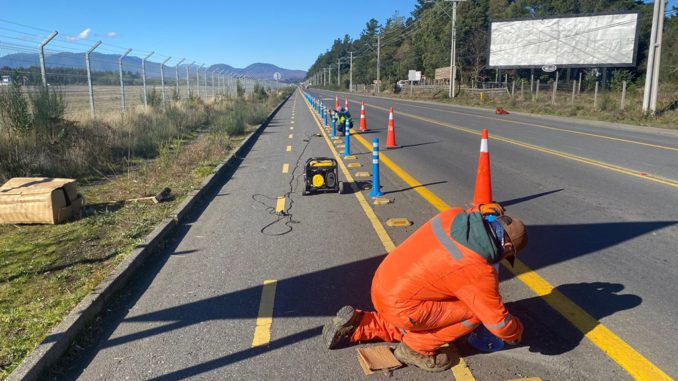 A partir del miércoles de la presente semana, se dio inicio a los trabajos de fortaleciendo de la red de la ciclovía en la ruta Ch-199, en el sector Aeropuerto, en donde el equipo de la Dirección de Tránsito de la Municipalidad de Pucón, quienes han comenzado la instalación de los delineadores verticales y posteriormente la instalación de las tachas solares, con la finalidad de mejorar las condiciones de seguridad de los ciclistas y usuarios de la ruta.