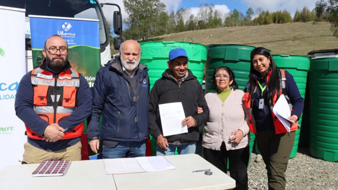 En la sede del sector Añilco, la Municipalidad de Villarrica, a través de la Unidad de Gestión del Riesgo de Desastres y la Oficina de Déficit Hídrico, hizo entrega de 24 estanques a las familias de la Comunidad José Manuel Tropan del sector Añilco.
