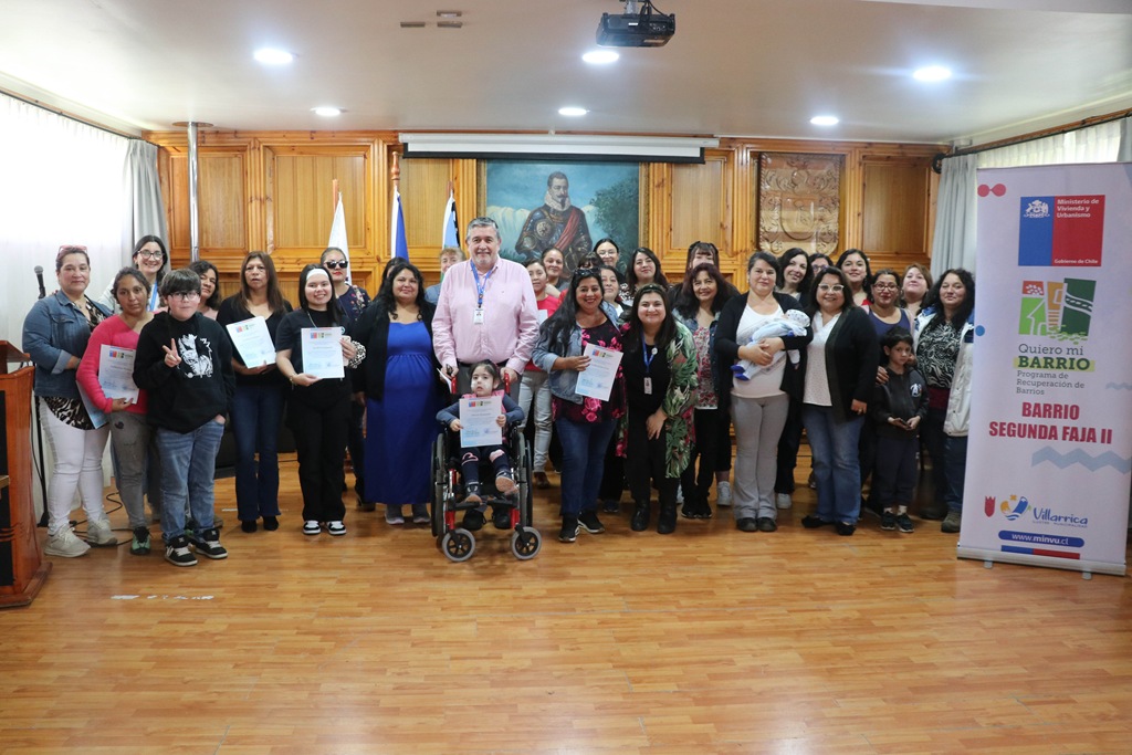 En el salón auditórium de la Municipalidad de Villarrica, se realizó la Ceremonia de Certificación de Talleres Laborales del Programa Quiero Mi Barrio, Segunda Faja II.