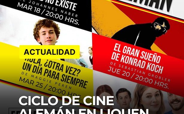 Esta semana se inicia el Primer Ciclo de Cine alemán que presenta tres obras de cine comenzando con el director Johannes Naber y su obra “Curveball, la verdad no existe” este martes, continúa con “EL gran sueño de Conrad Koch” del cineasta Sebastian Grobler el día jueves y concluye con el rodaje de Maggie Peren, “Hola, otra vez? un día para siempre” el martes 25 de febrero. Todas las películas serán exhibidas en la sala de teatro Liquen en horario de las 20.00 horas.