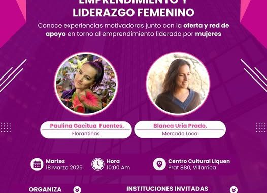 La actividad se denomina: Emprendimiento y Liderazgo Femenino y según la encargada del evento, Dafne Salinas, “esta es una instancia donde dos expositoras de la región, una local, estarán contando sus experiencias motivadoras y de cómo iniciaron sus emprendimientos. Además existirán redes de apoyo al emprendimiento femenino, con invitados como CORFO y SERCOTEC”.