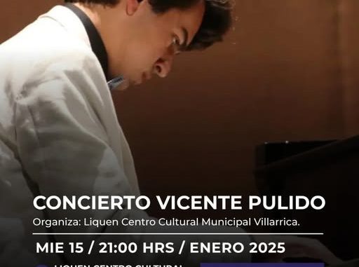 Esta semana será el turno de un joven de la quinta región que tiene gran apego por nuestra zona y en especial por el centro cultural, se trata del pianista Vicente Pulido, quien integra la ciudad del lago y volcán a su periplo por el país trasandino, viniendo de San Carlos de Bariloche donde ha presentado obras de Beethoven, Chopin, Ravel y Liszt y composiciones propias del pianista que cursó sus estudios en el Conservatorio de Música Sergei Prokofiev.