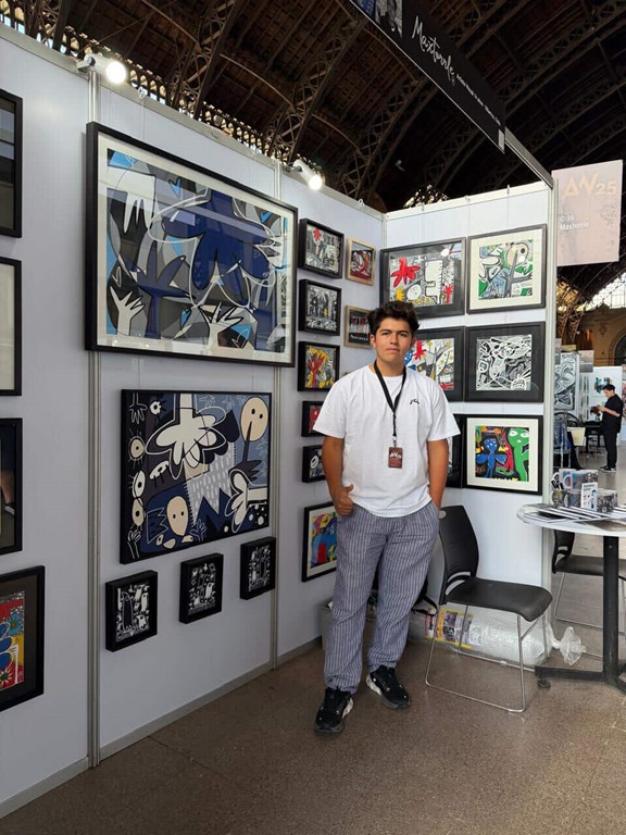 Durante el encuentro artístico, realizado en el Centro Cultural Estación Mapocho, el joven creador presentó una serie de obras en formato Fine Art, donde combina acrílico, pastel y arte digital intervenido. Su propuesta, que mezcla lo tradicional con lo contemporáneo, fue valorada por su identidad visual y por la madurez con que aborda la composición y el color.