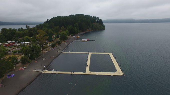 La piscina flotante y el Muelle Mirador en Playa Grande de Lican Ray, fue la obra de Conservación que realizó la Dirección de Obras Portuarias del Ministerio de Obras Públicas, Región de La Araucanía por más de mil millones de pesos.