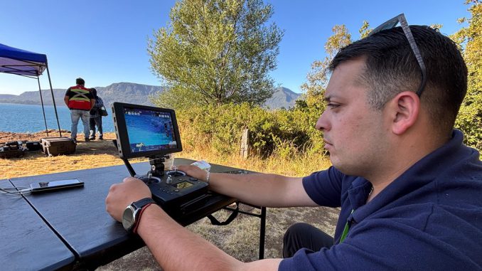 · Con equipo de dron de televigilancia, la Oficina de Seguridad Pública de la Municipalidad de Villarrica, efectúa la búsqueda de la joven desaparecida en el Lago Villarrica el 27 de enero en el sector de La Península de Pucón.