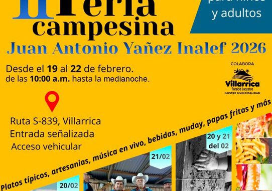La feria ubicada en la ruta S-839, camino 2da Faja kilómetro 7,5 desde Villarrica o ingreso por camino Cruz Blanca de la Ruta Villarrica Pucón; se desarrollará entre el 19 y el 22 de febrero, desde las 10:00 a las 00:00 horas, ofreciendo una variada programación pensada para toda la familia, que incluirá platos típicos, artesanías, juegos para niños, música en vivo y actividades recreativas.