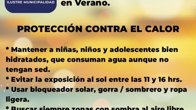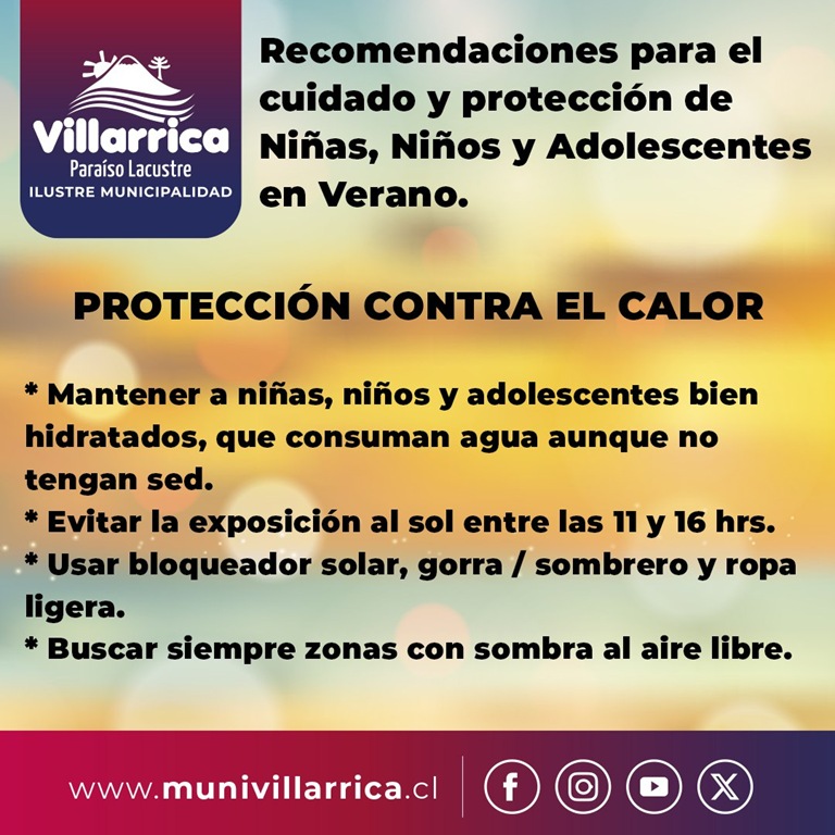 La Municipalidad de Villarrica a través de la Oficina Local de la Niñez y Adolescencia está realizando recomendaciones para el cuidado de las niñas, niños y adolescentes en estos días en que las temperaturas superarán los 30 grados en La Araucanía.